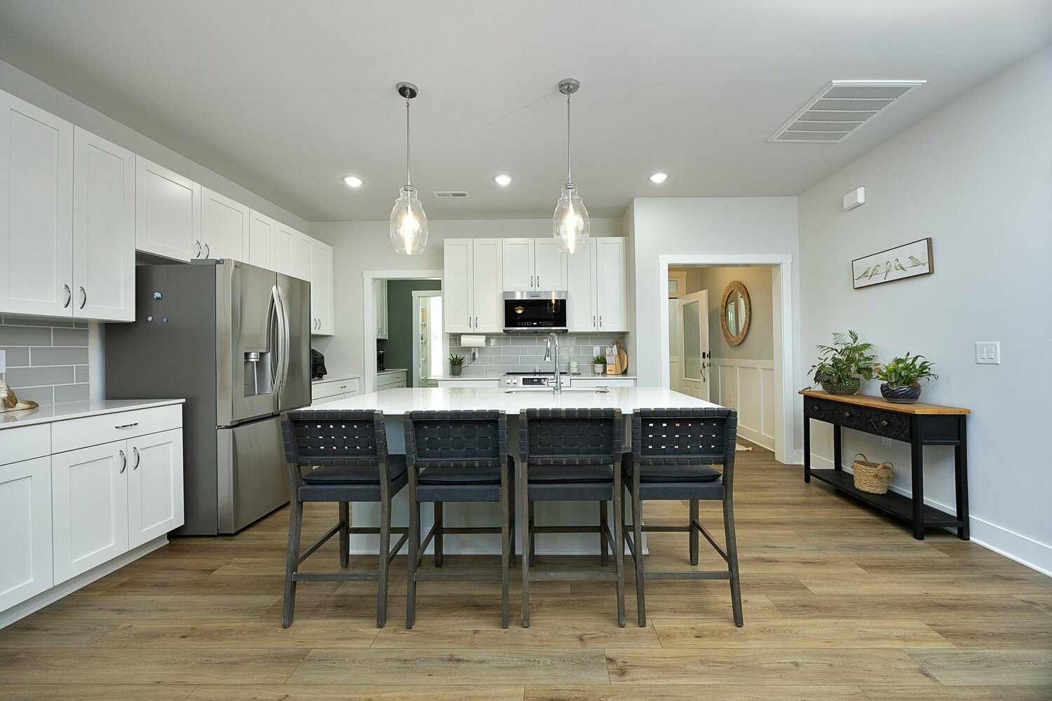 Hostess with the mostest? You just found your match! Highly upgraded, energy-efficient home offering a rare main-level living layout, ideal for multigenerational living. Primary suite with laundry room access, plus secondary bedroom with nearby full bath featuring an upgraded walk-in tile shower, are conveniently located on the first floor. Open-concept living with oversized kitchen island, walk-in pantry, and butler's pantry/scullery with wet bar create the perfect space for hosting friends, holiday gatherings, or casual weeknight dinners. A dedicated home office on the main level provides a quiet retreat for work or study. Outdoor living is exceptional! Screened porch, custom deck, hot tub, and large fully fenced backyard, perfect for summer barbecues, entertaining, or relaxation. An expanded driveway offers extra parking, while the garage includes an EV charger for today's modern lifestyle. Upstairs you'll find two additional bedrooms, a full bath, and spacious bonus room for movie & game nights. The walk-in attic space is great for storage or future expansion. Smart-home features and modern finishes throughout. Entertain in style; this one's a showstopper!