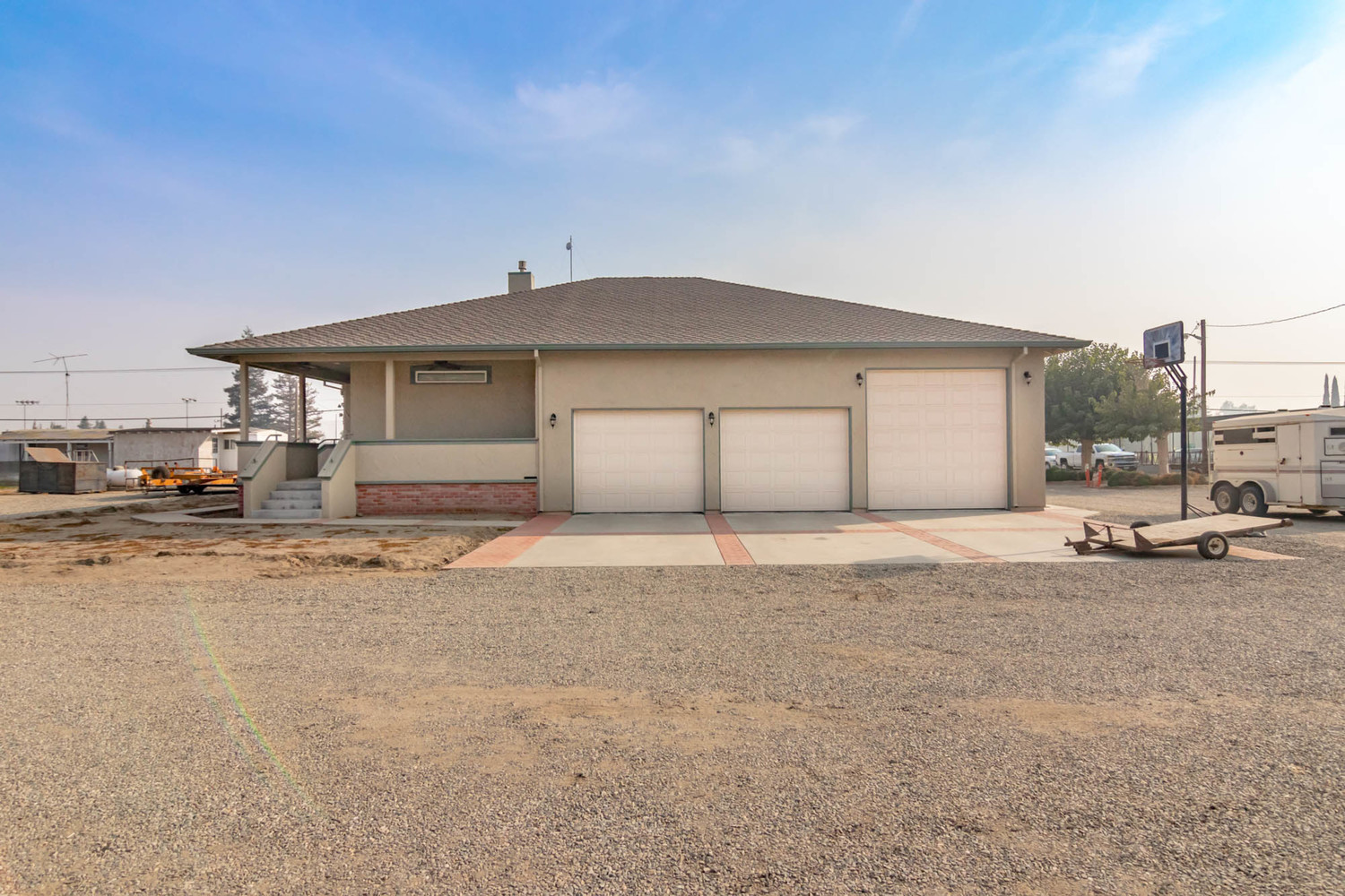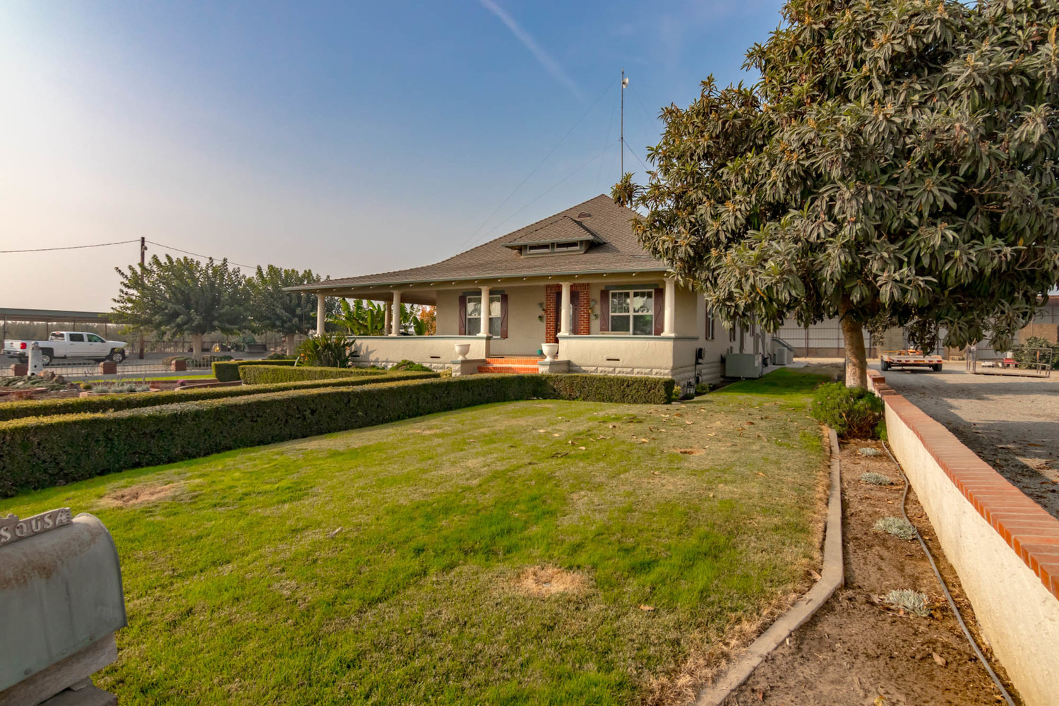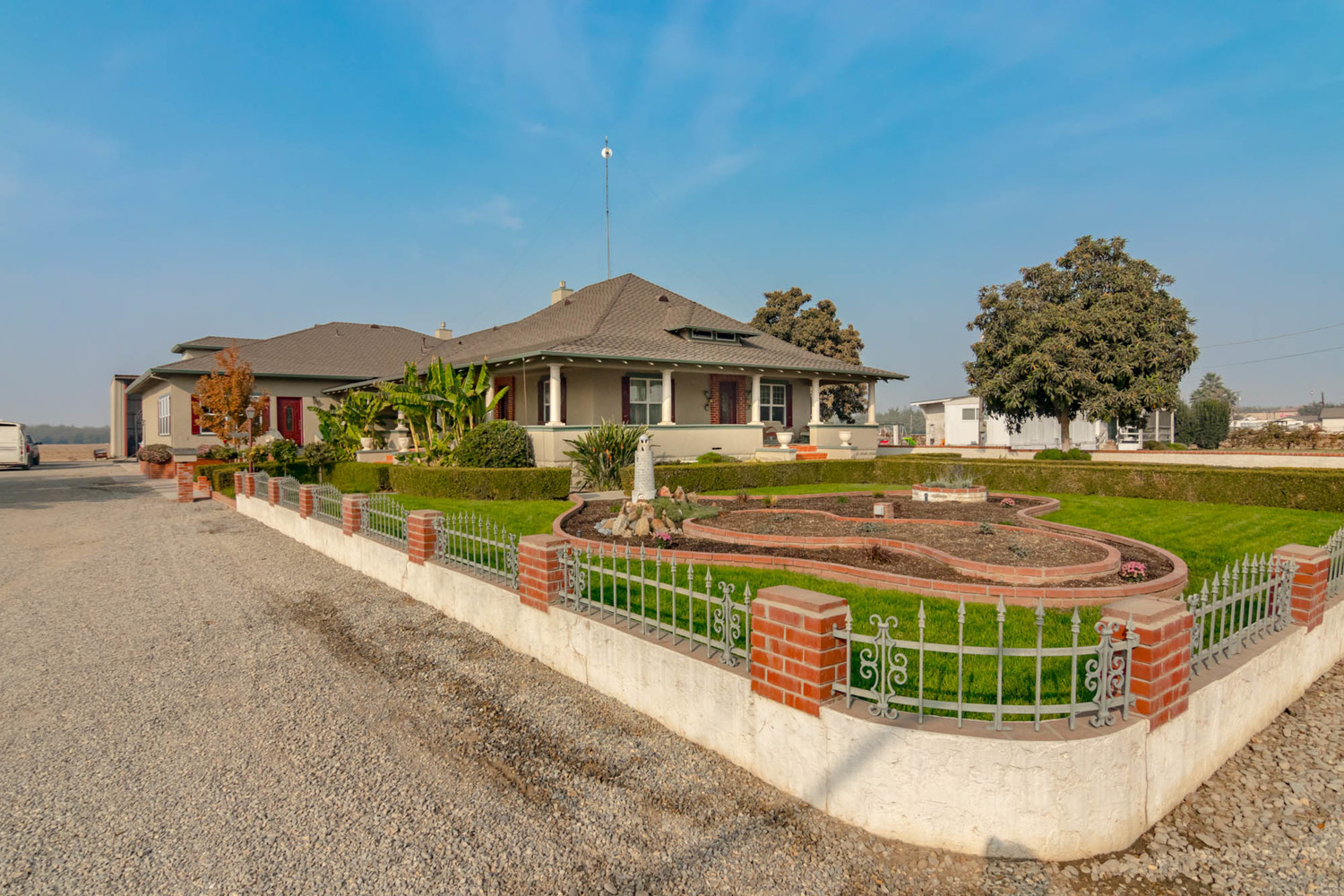 Craftsman/Ranch Home 37+ Acres Open Farm Ground Amenities This 37+ acre Farm Estate is a highly attractive property- on 37+ acres with open farm ground, barns, and a beautifully maintained 3,295 square foot home. This spacious, warm, and lovingly cared for 3bed/2.5bath country home features numerous upgrades throughout. Also, has an expansive insulated 3 bay garage. The T.I.D. irrigated & orchard ready farm ground features excellent class 1 soil that primarily has been farmed in Alfalfa and forage crops. The farm features a young 3 year old Independence Almond Orchard, numerous outbuildings, a large 3 sided 300' X 28' barn & a modular rental home. Kitchen has custom cabinets tastefully finished with cherry wood, Corian counters, a gas range, double ovens, built-in microwave, and dishwasher - all appliances in stainless steel. Sensor lights for ambiance and safety. Bar seating and a combined dining/family room area. The master bedroom with its warm and inviting gas fireplace has an oversized walk-in closet and fully usable closet organizers. The master bathroom has double sinks, sunken tub, and a separate shower, expertly finished with tile. The family room and the living room areas are open to each other, making a great space for entertaining. There is a lovely gas fireplace on the family room side. Home also features a large game/entertainment/media room with a bar, Corian counters, sink, wine refrigerator, Alder Wood custom cabinets, hardwood floors, 10 foot ceilings, the room has black out blinds to reduce glare for the entertainment center and surround sound. In addition, there is a heavy duty steel (covered with sheet rock and plaster) display shelve. This room is a perfect place for entertaining guests and family! The additions and upgrades have all been tastefully added to match the original craftsman bungalow home, so the flow and feel are true to the original style, very nicely done! The laundry room is complete with Alder Wood custom cabinets, sink, and plenty of counters for folding clothes. Also, featuring a handy shower… (Page 2) Beautiful plaster walls, double pane Milgard windows, and lots of storage throughout home. An in home office room. Two central heating and air units with two zones for energy efficiency. A whole house fan. Ceiling fans for added comfort. The huge 3 bay car garage is insulated and finished, has an outside door and in addition - a 400 amp welding plug. A beautiful wrap around porch lends itself to outdoor entertaining. High grade lifetime Presidential composition roof. 35+ acres of open farm ground. Young 3 year old 2.5 acre “Independence” Almond Orchard. A 12 foot access road around whole property. In the Turlock Irrigation District. Barn and storage buildings. 300’ X 28’ hay barns with 3 sides. Modular home 900 square feet, rents for $850 per month. The usable space and surroundings lends itself to amazing times with family and