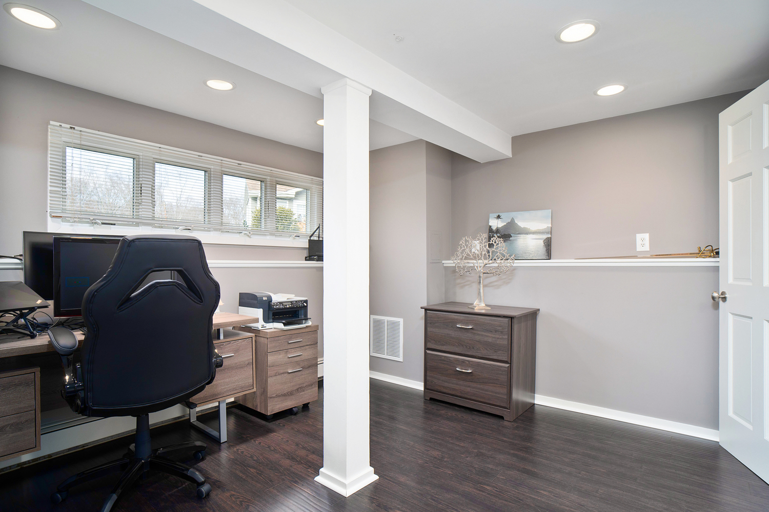 This generously proportioned open floor plan high ranch / colonial offers over 2,000 sq. ft of living space, and a level lot just shy of a half acre. Pristine hardwood floors covering the kitchen, living room and three spacious bedrooms; offering plenty of room for study, sleep and storage. 2.5 bathrooms, and a nicely appointed kitchen with GE Monogram Series stainless steel appliances; convection double ovens, dishwasher, wine refrigetator, along with a JENN AIR cooktop and microwave. The kitchen effortlessly connects to a living / family room showcasing a large fireplace and vaulted ceiling. In addition, you also have outdoor access from the kitchen to the large deck, perfect for sun, table seating, and grilling. The master bedroom with a nicely appointed en-suite also offers 2 large closets. The lower level boasts a finished, tiled family room and a large home office ( that could be converted to a 4th bedroom ) with half bath ensuite w/ full size SAMSUNG washer & dryer. A nice opportunity to covert to a 4th bedroom if you chose to.This is a beautifully done, vinyl sided home, with a new, oversized driveway 12/2020, great for a growing family. This property is ideally positioned to also enjoy the proximity to restaurants, shopping Centre, and sc