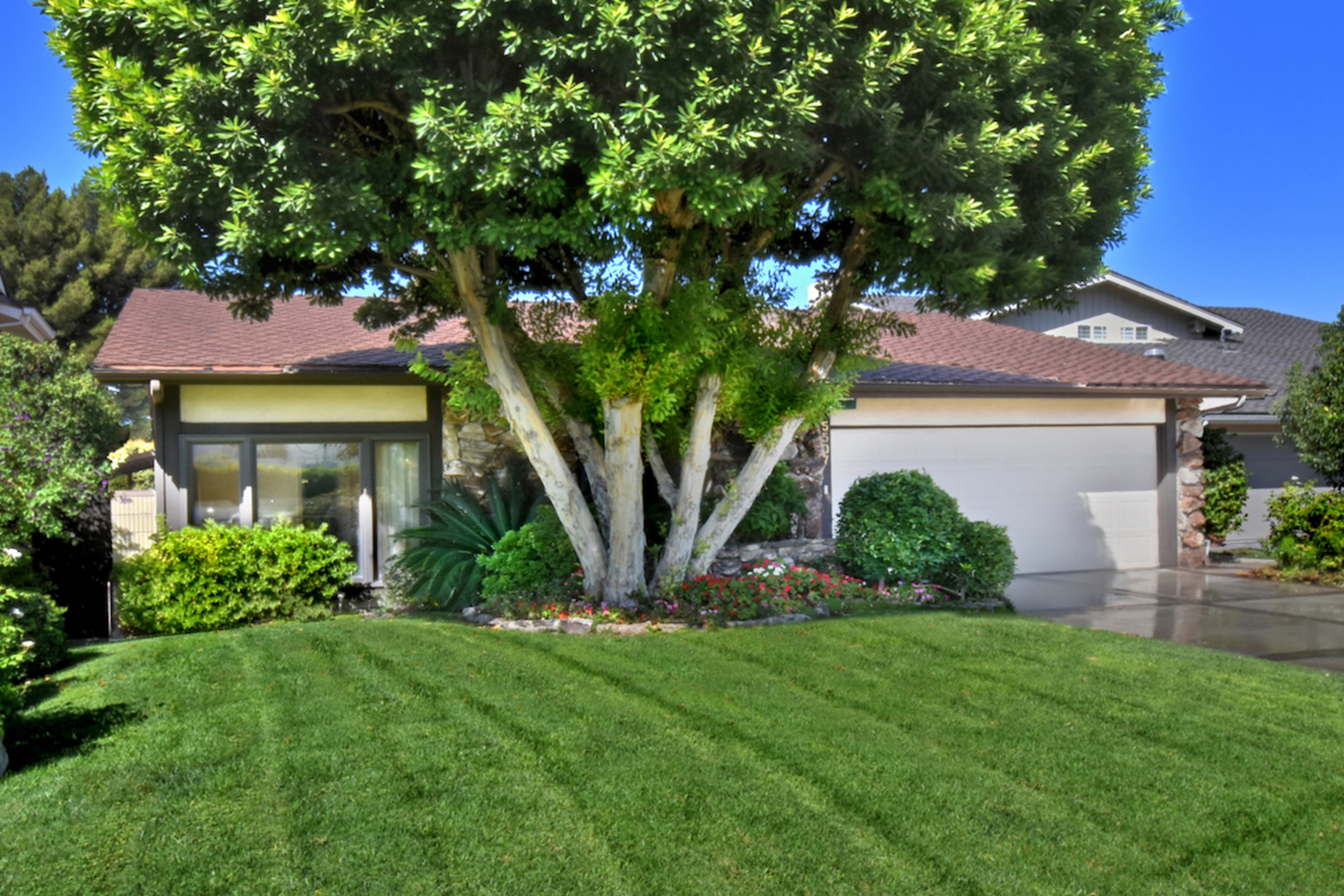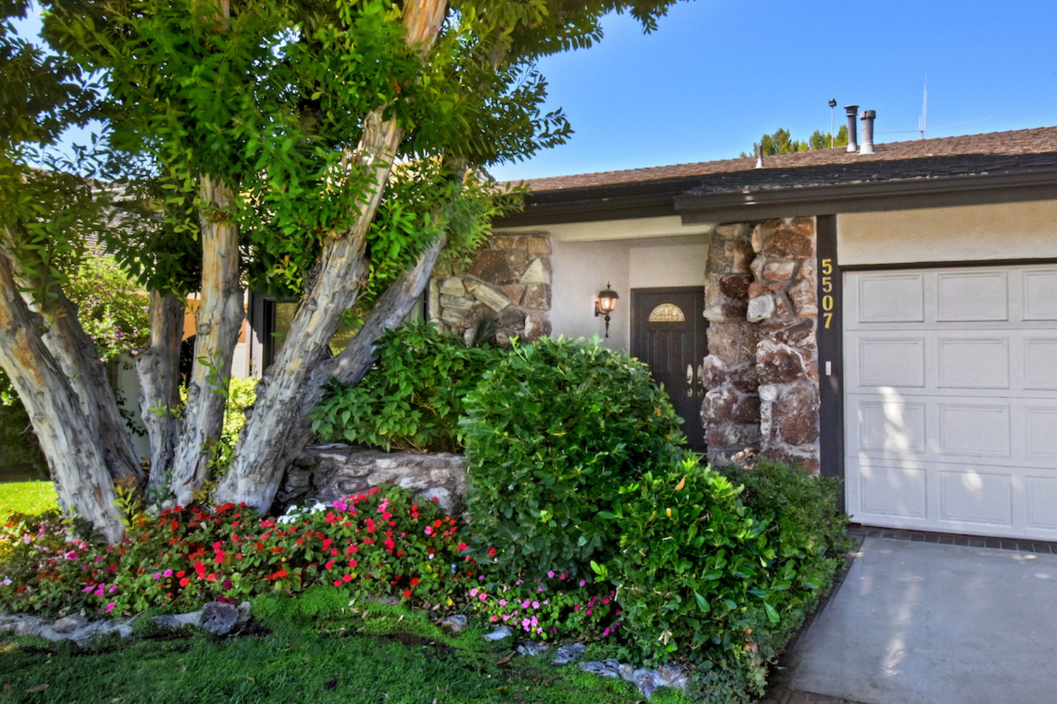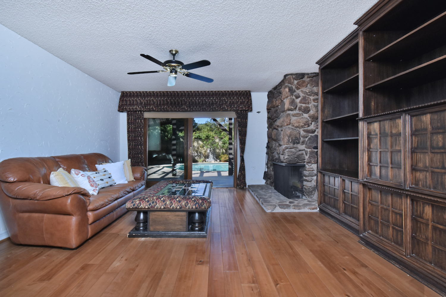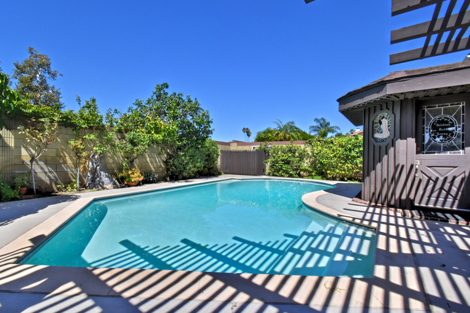 Located on a cul-de-sac in an established, highly sought-after neighborhood, this classic Valley Village home offers an airy interior with ample square footage and a private backyard with a resort-like pool and a pergola-shaded patio area. The attention to detail, love and pride of ownership is evident throughout this home, which has a double door entry surrounded by lush tropical landscaping, a natural stone façade and a large open concept living room/dining room area with soaring cathedral ceilings. The family room has a custom entertainment center and a walk-behind wet bar; sliding glass doors that open to the backyard and a stone fireplace add to the warm and comfortable atmosphere. A window box herb garden brings sunlight into the breakfast room/kitchen, which has functional appliances, custom cabinets and vintage ceramic tile in great condition. The nearby patio is perfect for dining outside; the secondary bedroom is ideal for a bedroom or home office. With vaulted ceilings and a large bathroom with dual sinks, the master suite is a relaxing place to finish the day. Other highlights include plenty of storage space and an attached two car garage. Available for the first time in 50 years and located nearby local freeways, shops and restaurants, houses of worship and Valley College, this home is the opportunity of a lifetime.