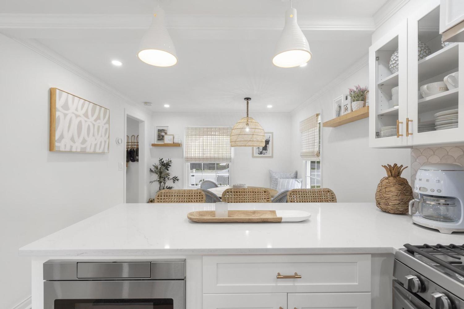 Welcome to 537 South Pine Creek Rd, a stunning 2-bedroom home that embodies the perfect blend of contemporary elegance and classic charm. This luxury remodel has been meticulously designed and upgraded to offer the utmost comfort, style, and sophistication. Located in the sought-after Pine Creek neighborhood in Fairfield, this residence offers an unparalleled living experience in a prime location. As you step inside, you'll immediately be greeted by an atmosphere of refinement and beauty. The floor plan seamlessly integrates the living, dining, and kitchen areas, creating a harmonious flow that is perfect for entertaining and everyday living. Natural light streams through large windows, illuminating finishes and designer touches throughout. The kitchen is a culinary enthusiast's dream, featuring top-of-the-line stainless steel appliances, (SMEG) custom cabinetry, and quartz countertops. The peninsula island provides ample space for meal preparation and doubles as a breakfast bar for casual dining. Whether you're hosting a lavish dinner party or enjoying a quiet meal with loved ones, this kitchen will inspire your inner chef. The primary bedroom is a true oasis of relaxation and indulgence. It boasts two closets with custom shelving, offering ample storage for your wardrobe. The second bedroom is equally well-appointed, providing a comfortable retreat for guests or the perfect space for a home office or den. Beyond the interior, the outdoor space is equally impressive. Step outside onto a blue stone patio, offering a serene escape from the outside world. The patio area provides an ideal setting for al fresco dining or simply unwinding amidst the picturesque surroundings. Conveniently located in the heart of Fairfield, this home offers easy access to a variety of amenities. Enjoy the nearby parks, golf courses, shopping centers, and restaurants, all just moments away. The renowned South Pine Creek Beach is within walking distance, allowing you to soak up the sun and enjoy the coastal beauty at your leisure. This luxury remodel at 537 South Pine Creek Rd presents an exceptional opportunity to live in a meticulously crafted home that exudes style, sophistication, and comfort. Don't miss your chance to make this exquisite property your own. Schedule a private showing today and experience the epitome of luxurious living in Fairfield, CT.
