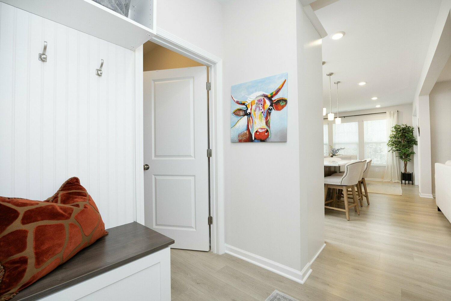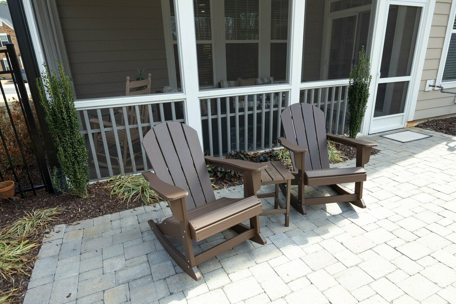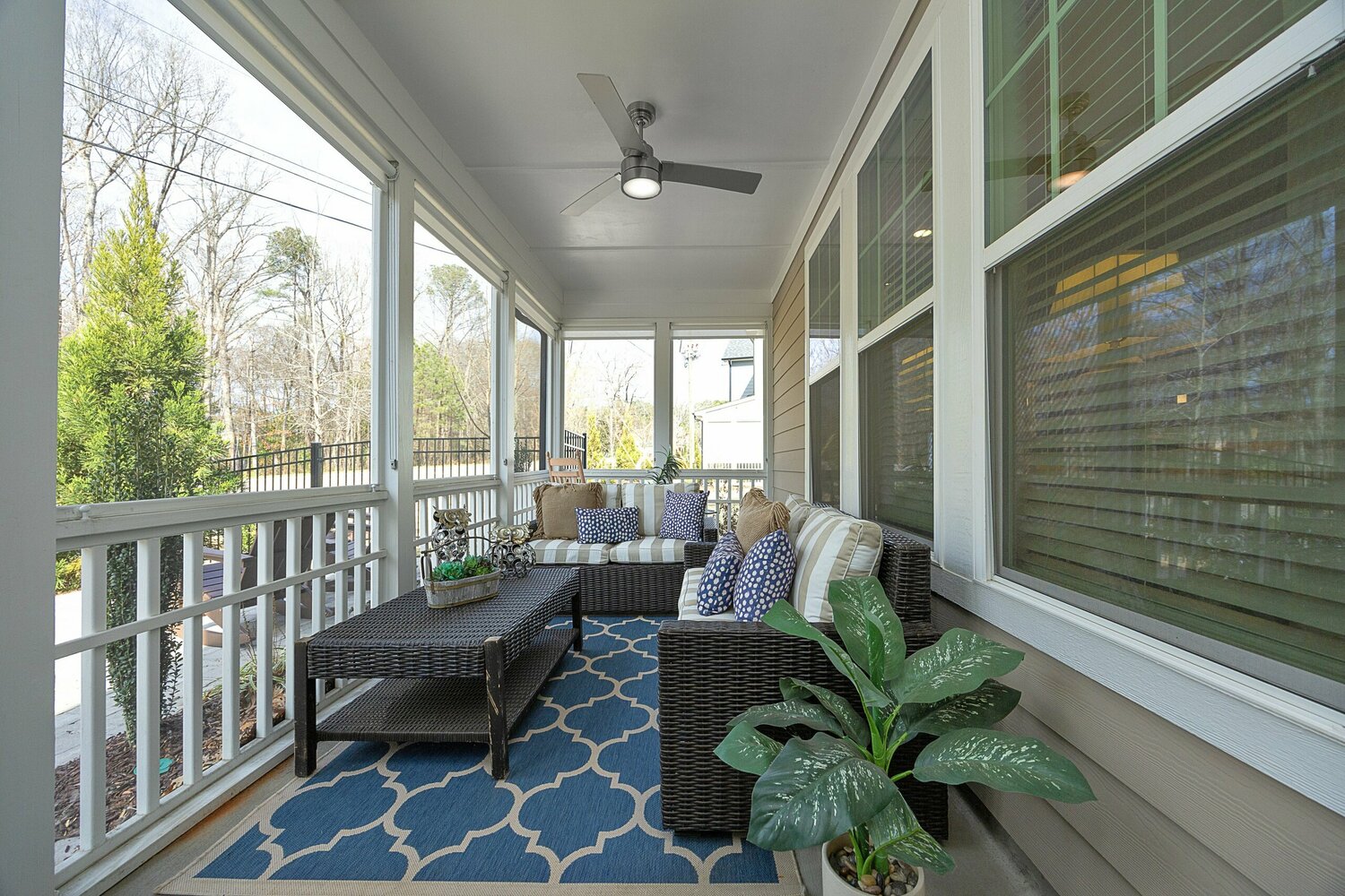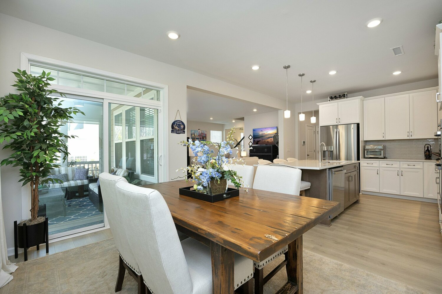 Beautiful Linden II floorplan with a bonus room and full bathroom on the 3rd floor. This home has 4 bedrooms with one on the first floor. White cabinets in the gourmet kitchen with a contrasting latte wood island cabinets, pearl quartz counters and amity glass backsplash. Enjoy a large walk-in pantry with custom shelves and drawers. The living room has a cozy corner gas fireplace. Enjoy a morning coffee on the screen porch. The owner's bedroom has a large walk-in closet with custom built-ins and a tiled shower with seat as well as a large garden tub. 2nd floor laundry room has included washer and dryer as well as a laundry sink. This home has plenty of closet and storage space for all your needs.
